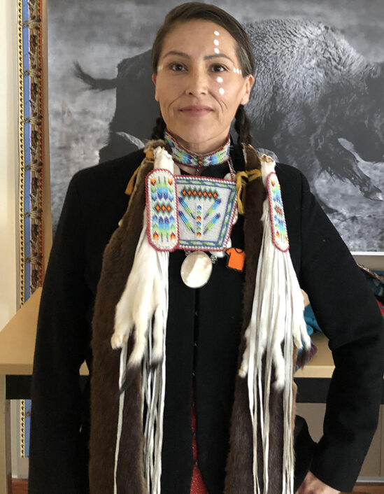 Teedly Teresa Mariea Linklater is from Thunderchild First Nation. Teedly is a mother and is active in the community, spending a lot of time as a volunteer sewing at the White Buffalo Youth Lodge, helping out with the Indigenous Radio Show at CFCR, singing, drumming at community events, and being apart at the Indigenous School Council at Mount Royal Collegiate. She lives a traditional life, free of drugs, tobacco and alcohol. She learns the language through song and elders in the community. |